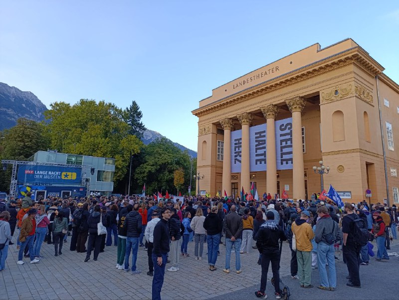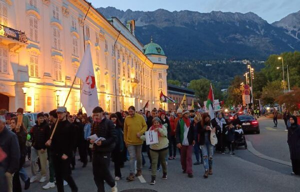 In Innsbruck beteiligten sich etwa 1.500 Personen an der Demonstration, die durch die Palästina Initiative Tirol organisiert wurde. Die friedliche, wenngleich kraftvolle und laute Demonstration, die die Vorgänge in Gaza und den Umgang mit dem palästinensischen Volk verurteilten verliefen friedlich. Dennoch kam es zu einer kurzzeitigen Verhaftung wegen Parolen rund um „From the river to the sea“. In den Mainstreammedien wird Stimmungsmache betrieben indem von vermeintlichen Ausschreitungen im Zuge der Demonstration berichtet wird und so der Versuch unternommen wird, den starken Protest zu delegitimieren. Mitglieder unserer Redaktion konnten keinerlei Ausschreitungen im Rahmen der Demonstration beobachten, im Gegenteil, es war ein breiter und bunter Protest, der Ausdruck von Solidarität und einem nicht mehr hinnehmen war. Die Organisatoren kündigten an Massnahmenbeschwerde gegen die Polizei wegen dem Vorgehen nach der Abschlusskundgebung einzulegen.