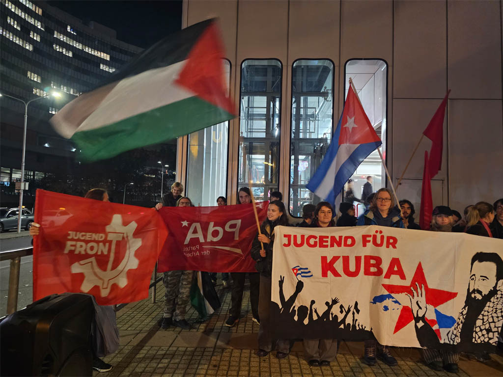Die Partei der Arbeit charakterisierte in ihrem Redebeitrag deutlich, welche Rolle Kuba international einnimmt: „Kuba unterstützt die Klage gegen Israel vor dem Internationalen Gerichtshof, ist an der Seite des palästinensischen Volkes. Junge Menschen aus Palästina finden in Kuba Schutz und Ausbildung. Wir durften erst dieses Jahr drei junge Studenten in Kuba kennenlernen, die in Kuba kostenlos zu Ärzten ausgebildet wurden und mit den Werkzeugen ausgestattet wurden, um ihrem unterdrückten Volk zu helfen. Das ist wahre internationale Solidarität!“